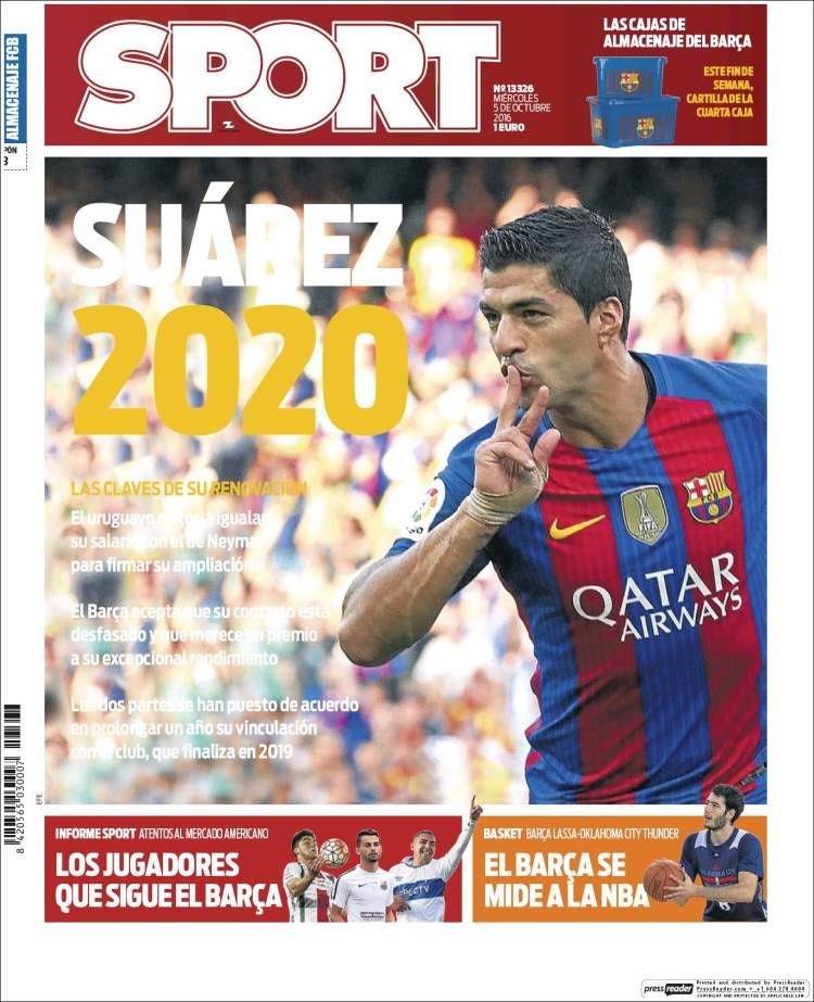Μία άκρως ευχάριστη είδηση περιλαμβάνει η σημερινή αθλητική επικαιρότητα που αφορά την Μπαρτσελόνα, με τις δύο μεγάλες αθλητικές καταλανικές εφημερίδες να υποστηρίζουν πως η Μπαρτσελόνα έχει ξεκινήσει ήδη τις διαδικασίες ώστε μέχρι τα Χριστούγεννα να έχει υπογράψει νέο συμβόλαιο με τον Λουίς Σουάρες.