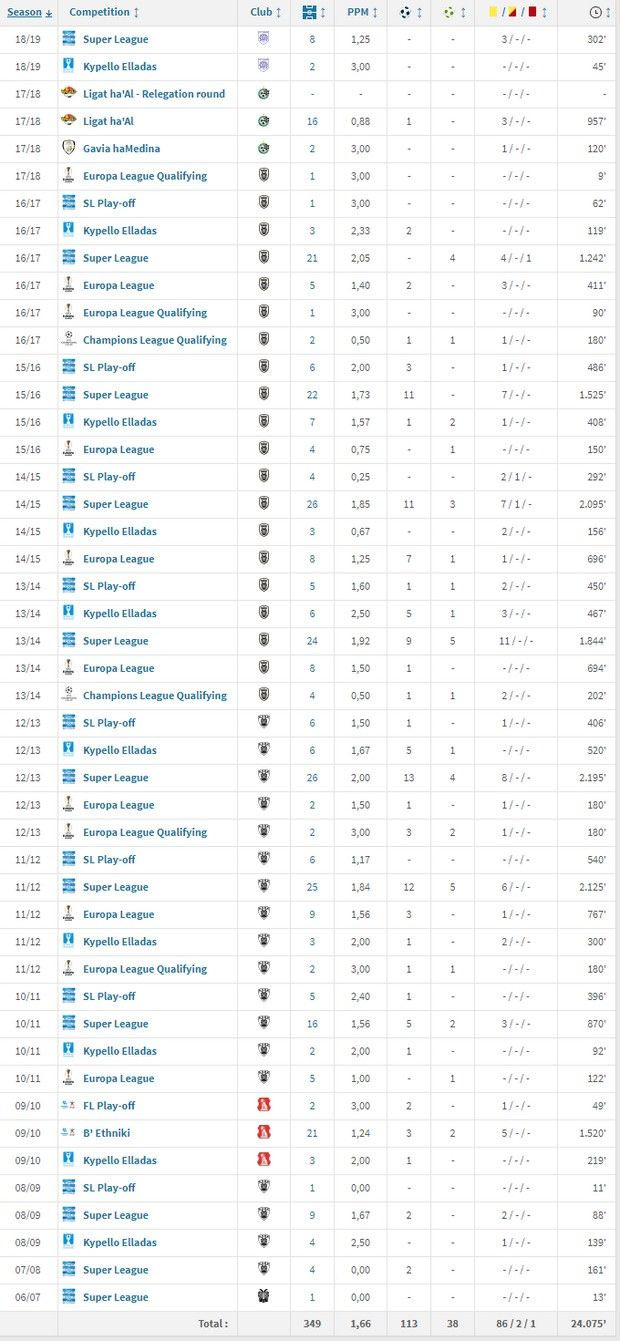 Η περιπέτειά του στο Ισραήλ με τη φανέλα της Μακάμπι Χάιφα ολοκληρώθηκε με ένα γκολ και καμία ασίστ σε μόλις 18 αγώνες που τον εμπιστεύτηκε ο προπονητής του. Από εκείνο το τέρμα τον Οκτώβριο του 2017 πέρασαν 1.092 μέχρι το επόμενο, αυτό του Σαββάτου κόντρα στους Κρητικούς.