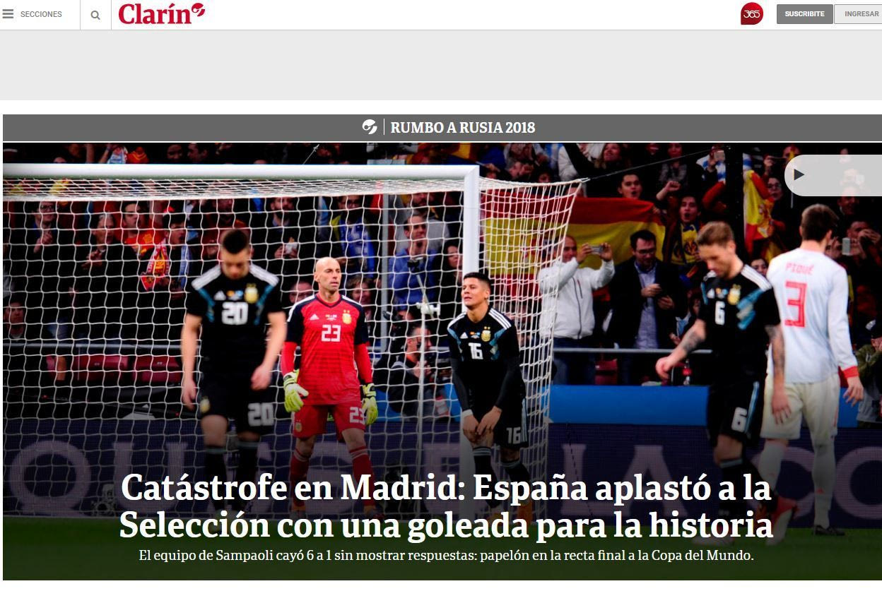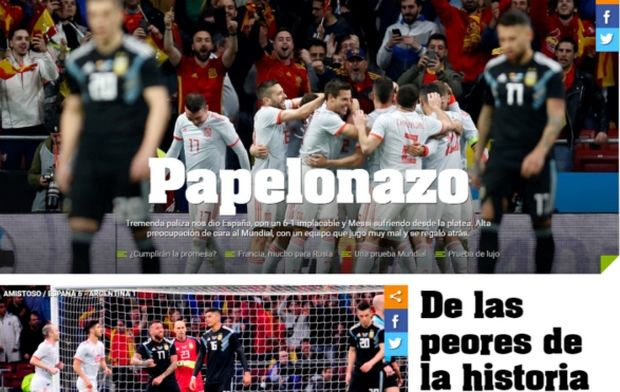 Χαρακτηριστικά η “Ole” έκανε λόγο για “εξευτελιστική ήττα” ενώ η “La Nacion” ανέφερε ότι: “Η Ισπανία ξεφτίλισε την Αργεντινή στην Μαδρίτη. Το αποτέλεσμα ήταν γροθιά στο πρόσωπο”.