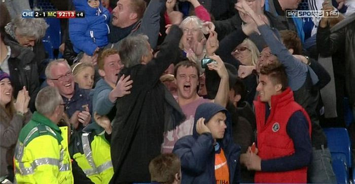Ο Ζοζέ Μουρίνιο, κατά τη διάρκεια της αναμέτρησης της Τσέλσι με την Μάντσεστερ Σίτι, ενθουσιάστηκε όταν ο Φερνάντο Τόρες πέτυχε το γκολ που έδωσε τη νίκη στους “μπλε” και έσπευσε να το πανηγυρίσει με τους φίλους της ομάδας στις εξέδρες του “Στάμφορντ Μπριτζ”.