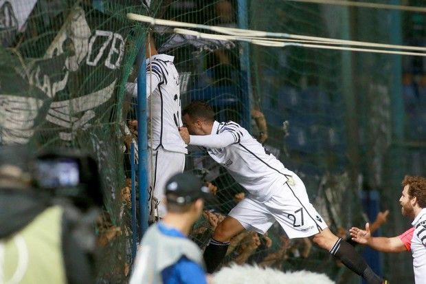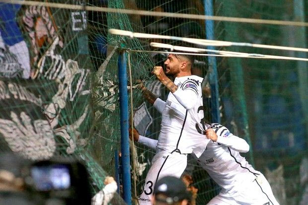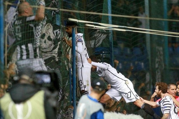 Ο διεθνής Έλληνας φορ του “δικεφάλου” έβγαλε όλη την ένταση που κουβαλούσε μέσα του και πανηγύρισε σαν μικρό παιδί μετά το 2-1 υπέρ του ΠΑΟΚ. Πήδηξε πάνω από τις διαφημιστικές πινακίδες και ανέβηκε στην εξέδρα, φτάνοντας μια ανάσα από τους οπαδούς. Θύμισε εν πολλοίς τον Ντέμη Νικολαΐδη σε ανάλογο πανηγυρισμό…