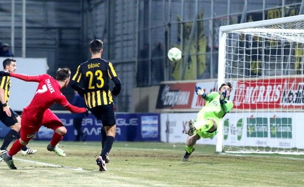 Στο 54ο λεπτό αντίκρισε την πρώτη κίτρινη κάρτα από τον διαιτητή του Παπαδόπουλο για “θέατρο” μέσα στην περιοχή της ΑΕΚ ενώ μέσα σε διάστημα τεσσάρων λεπτών είδε και την κόκκινη κάρτα (δεύτερη κίτρινη) για μαρκάρισμα πάνω στον Πέτρο Μάνταλο.