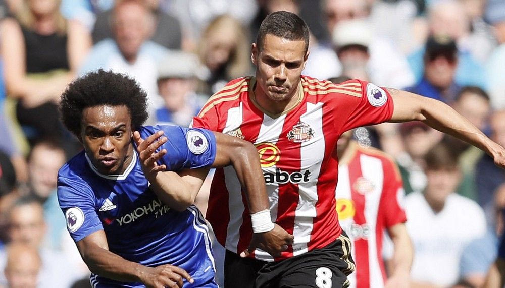 Ο Τζακ Ρόντγουελ ως ποδοσφαιριστής της Σάντερλαντ με αντίπαλο τον Γουίλιαν της Τσέλσι AP Photo/Kirsty Wigglesworth