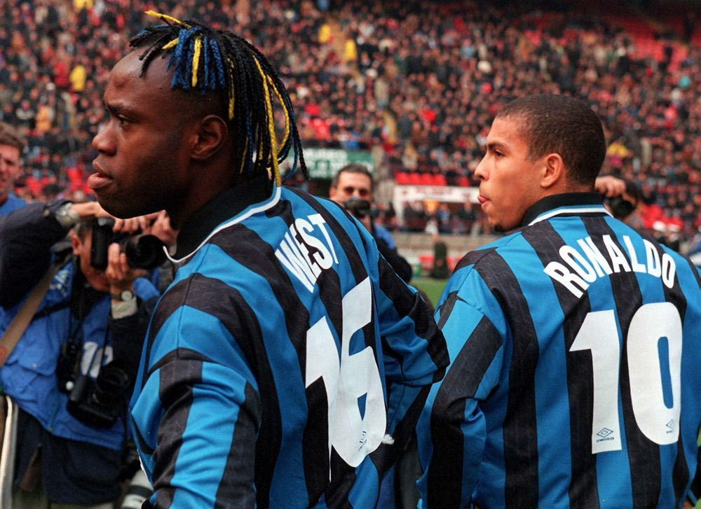 Ταρίμπο Γουέστ και Ρονάλντο σε στιγμιότυπο από την αναμέτρηση Ίντερ - Πάρμα, τον Φλεβάρη του 1997. (AP Photo/Carlo Fumagalli) ASSOCIATED PRESS