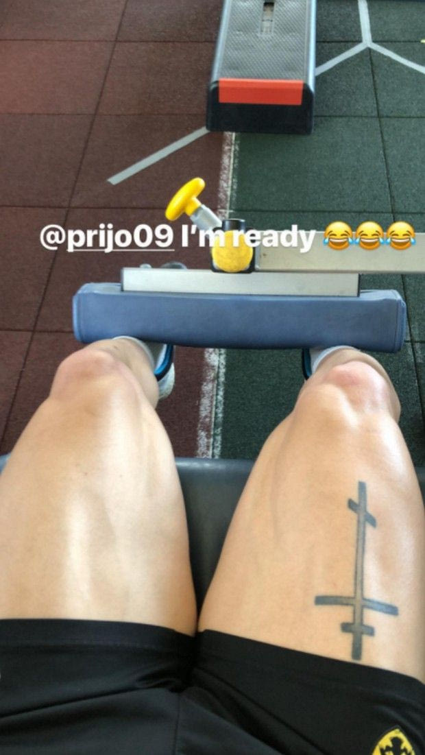 Κατά τη διάρκεια της προπόνησής του, ο 28χρονος αμυντικός ανέβασε μία φωτογραφία όπου σηκώνει βάρη με τα πόδια του, επισημαίνοντας το όνομα του Πρίγιοβιτς, πλαισιώνοντας το με μία φράση: ” Είμαι έτοιμος“.