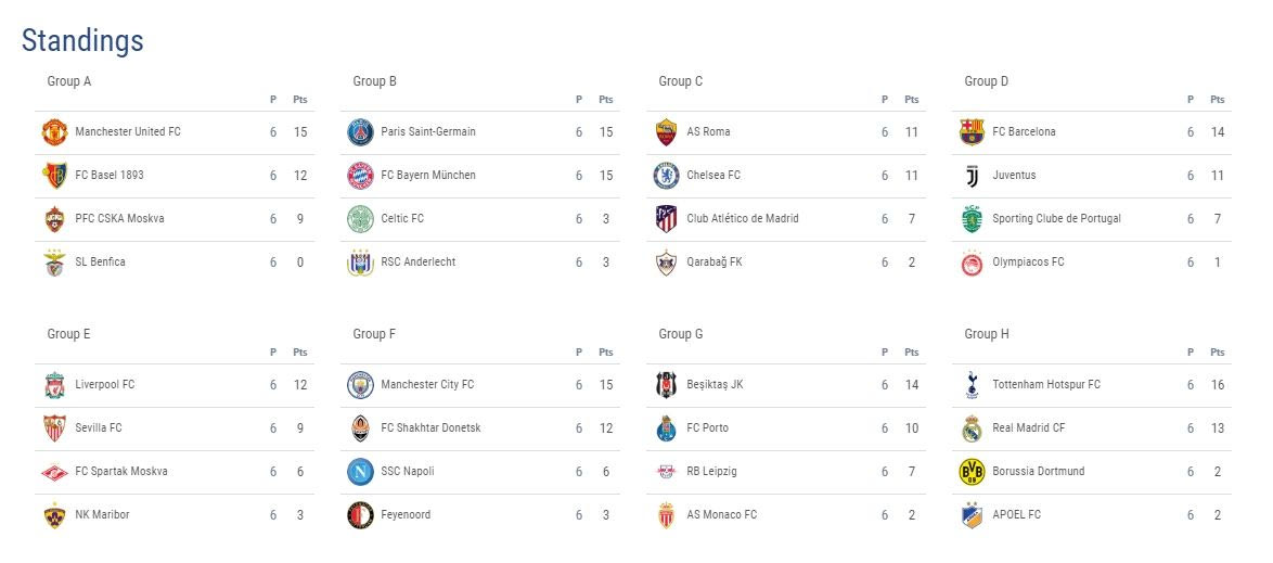 Οι ομάδες που πήραν την Τετάρτη (6/12) τηνπρωτιάστα γκρουπ τους ήταν οι: Λίβερπουλ, Μάντσεστερ Σίτι, Μπεσίκτας, Τότεναμ