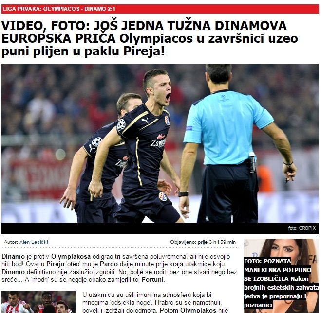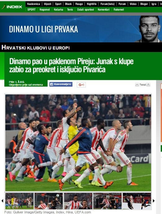 Η κροατική ιστοσελίδα ” index.hr” γράφει πως “Η Ντιναμό έπεσε στα κολαστήριο του Πειραιά, ο ήρωας από τον πάγκο σκόραρε δύο γκολ”.