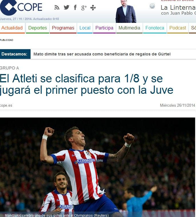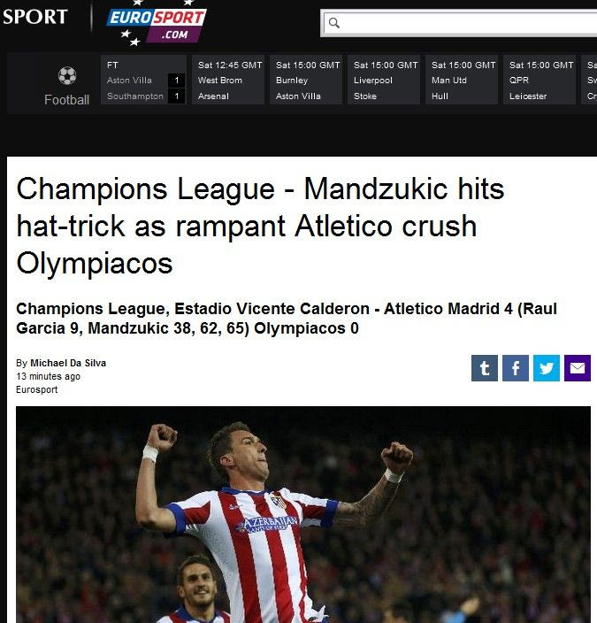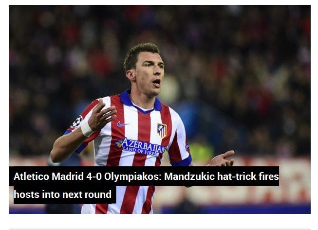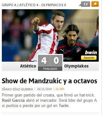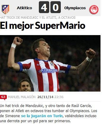 Ο πρωταγωνιστής της αναμέτρησης της Ατλέτικο με τον Ολυμπιακό, Μάριο Μάντζουκιτς, αποτελεί πρώτο θέμα στον ισπανικό Τύπο, για "δώρο" των "ροχιμπλάνκος" στη Γιουβέντους μιλούν οι Ιταλοί. Διαβάστε τι γράφει ο ξένος Τύπος για τη συντριβή των πρωταθλητών Ελλάδας στο "Βιθέντε Καλδερόν".