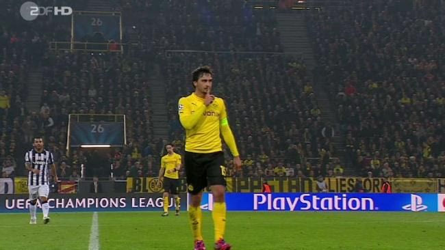 Ο Ματς Χούμελς κατά τη διάρκεια του αγώνα της Ντόρτμουντ με την Γιουβέντους για τους "16" του Champions League, ζήτησε από τους φιλάθλους που αποδοκίμαζαν να σωπάσουν, κάνοντας τη χαρακτηριστική κίνηση με το δάκτυλο.