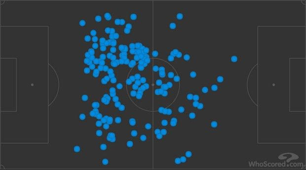 Ο 25χρονος μέσος έκανε 180 στο παιχνίδι με την Γούεστ Χαμ (0-0), κάτι που μεταφράζεται σε μία πάσα κάθε 30 δευτερόλεπτα, με το 90% εξ αυτών να είναι επιτυχημένες. Δεύτερος στη σχετική λίστα από τους συμπαίκτες τους, ο Ρούντιγκερ ο οποίος πάσαρε μόλις 86 φορές.