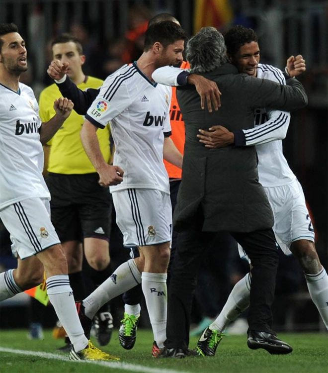 Ο σκόρερ Βαράν πανηγυρίζει με τον Μουρίνιο