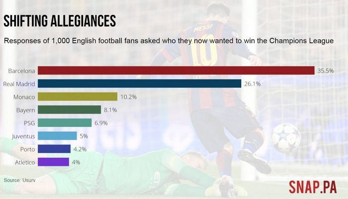 Στην έρευνα που πραγματοποίησε η “snappa” ρωτήθηκαν 1.000 Βρετανοί σχετικά με την ομάδα που θα ήθελαν να δουν να κατακτά το φετινό Champions League.
