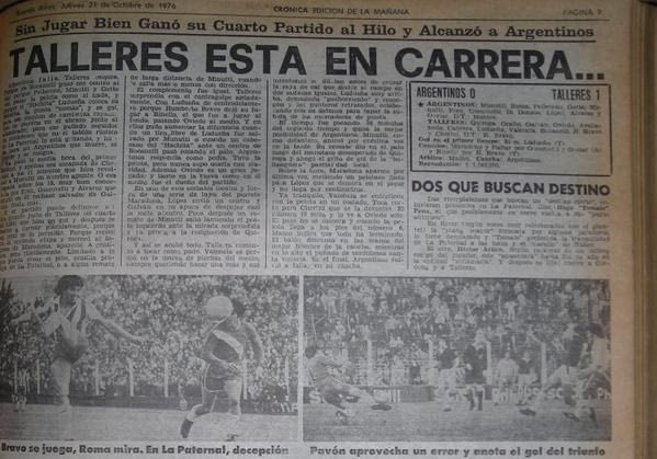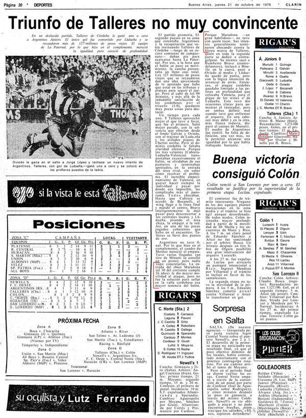 Το αποτέλεσμα, όμως, δεν ήρθε. Η Ταγέρες πήρε την εκτός έδρας νίκη με 1-0 και ο Μαραντόνα δεν είχε καλή απόδοση. Η ανασκόπηση της “Clarín” για τον αγώνα τον χαρακτηρίζει “πολύ ικανό” και για την απόδοσή του αναφέρει ότι “δεν αγωνίστηκε καλά. Οι προσπάθειές του συνήθως κατέληγαν σε πρόσκρουση στη σιδηρά άμυνα της Ταγέρες, που στο δεύτερο ημίχρονο αφοσιώθηκε στις αντεπιθέσεις”.