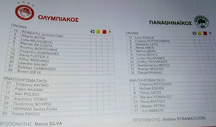 Ιδού οι ενδεκάδες που επέλεξαν Μάρκο Σίλβα και Αντρέα Στραματσόνι, για το αποψινό ντέρμπι του Ολυμπιακού με τον Παναθηναϊκό στο γήπεδο Καραϊσκάκη.