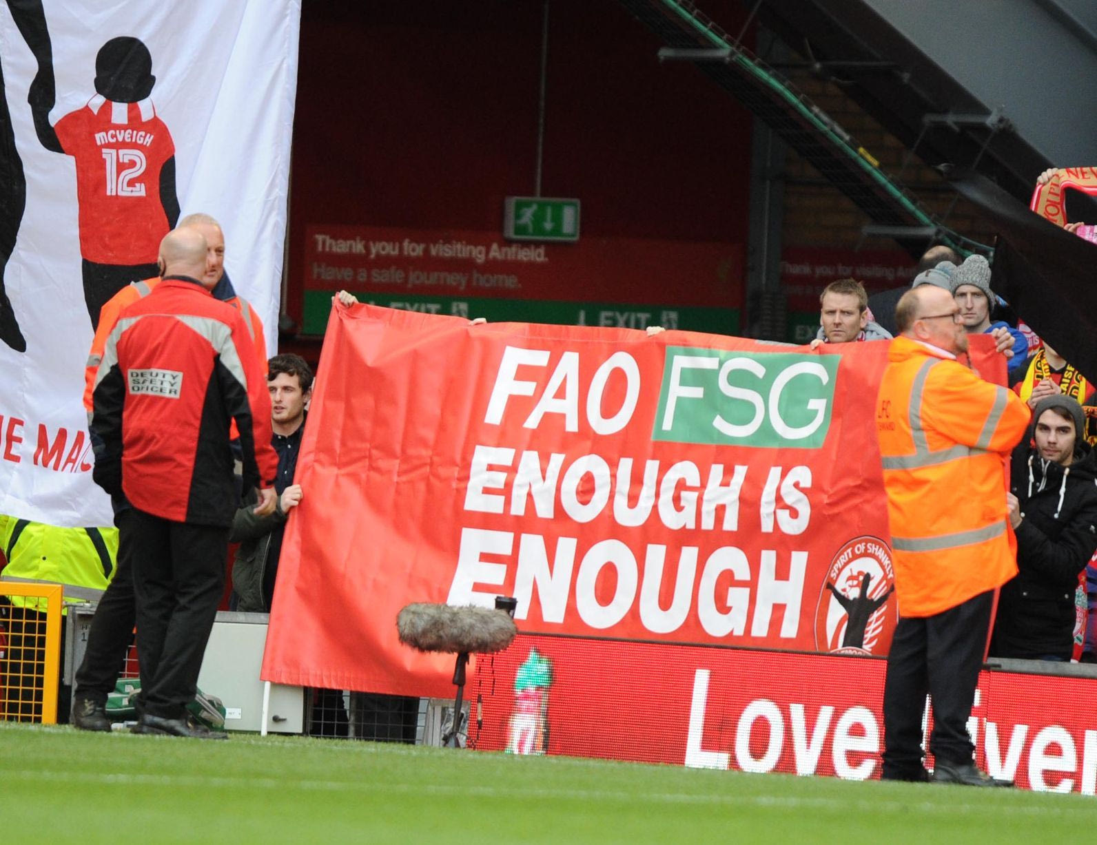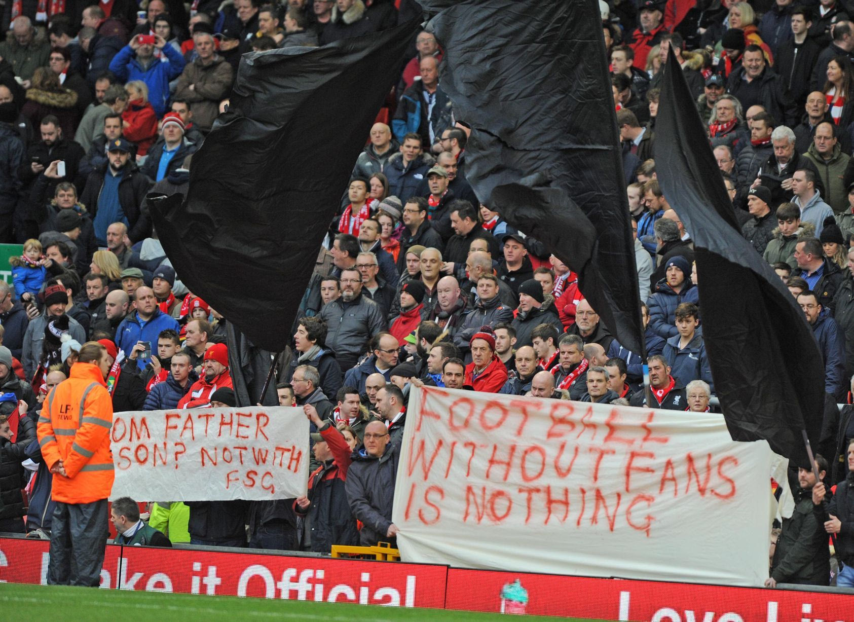 Ως αποτέλεσμα, περίπου 10.000 φίλαθλοι τραγούδησαν συνθήματα “Αρκετά” και “Άπληστοι μπάσταρδοι”, είπαν το “You’ll Never Walk Alone” και έφυγαν από τις θέσεις τους με τη συμπλήρωση 77 λεπτών στον αγώνα.