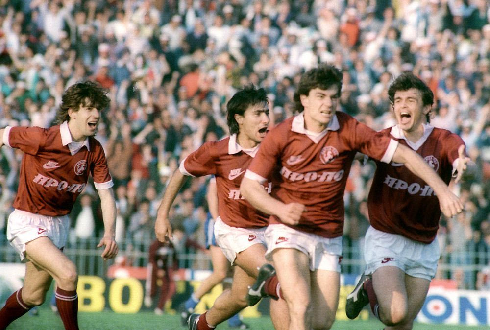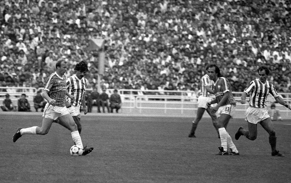 Βέλιμιρ Ζάετς, Χουάν Ραμόν Ρότσα, Πέτρος Ξανθόπουλος και Γιώργος Σεμερτζίδης από την αναμέτρηση Παναθηναϊκός - Ολυμπιακός 1-1 (21/09/1986) ACTION IMAGES