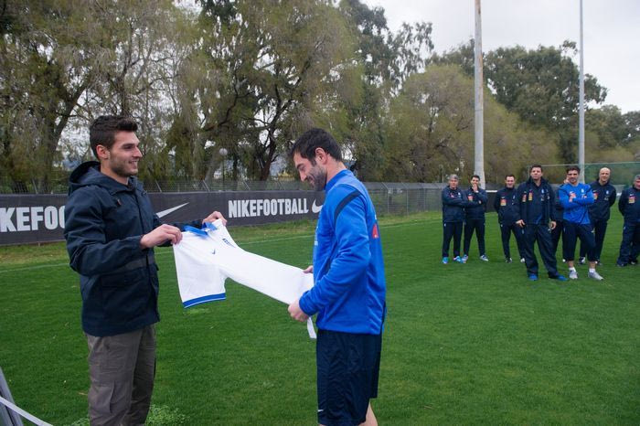 Λίγα λεπτά μετά την έναρξη της προπόνησης, οι νεαροί ποδοσφαιριστές μπήκαν στο γήπεδο, μεταφέροντας ένα από τα ταξιδιωτικά μπαούλα της αποστολής της Εθνικής. Φτάνοντας στη σέντρα του γηπέδου, άνοιξαν το μπαούλο και κάλεσαν όλους τους παίκτες της Εθνικής Ομάδας να δουν για πρώτη φορά και να παραλάβουν τις νέες φανέλες τους.