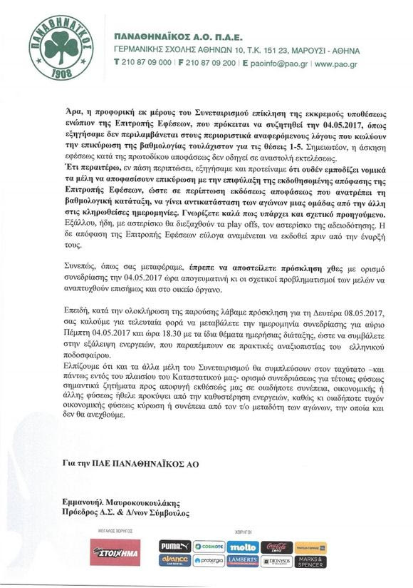 Η ΠΑΕ Παναθηναϊκός έστειλε επιστολή την Super League ζητώντας να ξεκινήσουν άμεσα τα πλέι οφ, όπως προβλέπει η προκήρυξη του πρωταθλήματος. Ποιοι οι λόγοι που εμμένουν στη στάση τους οι πράσινοι.