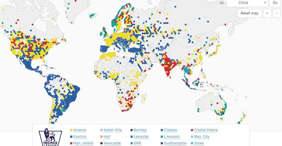 Οι ομάδες της Premier League με τους περισσότερους οπαδούς στον κόσμο ανά περιοχή (Χάρτης)