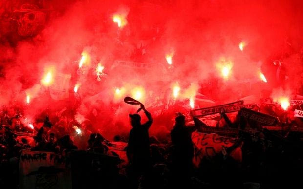 Λίγο πριν από την πρώτη σέντρα στον αγώνα της ομάδας τους με την Μάντσεστερ Γιουνάιτεντ για τους “32” του Europa League (την ώρα της ανάκρουσης του ύμνου της διοργάνωσης) άναψαν δεκάδες πυρσούς κόκκινου και πράσινου χρώματος και η ατμόσφαιρα που δημιούργησαν ήταν κάτι παραπάνω από εντυπωσιακή.