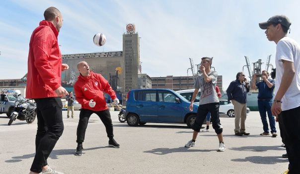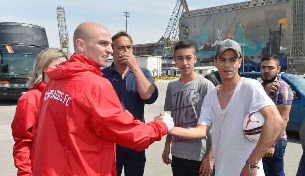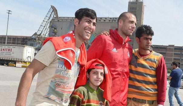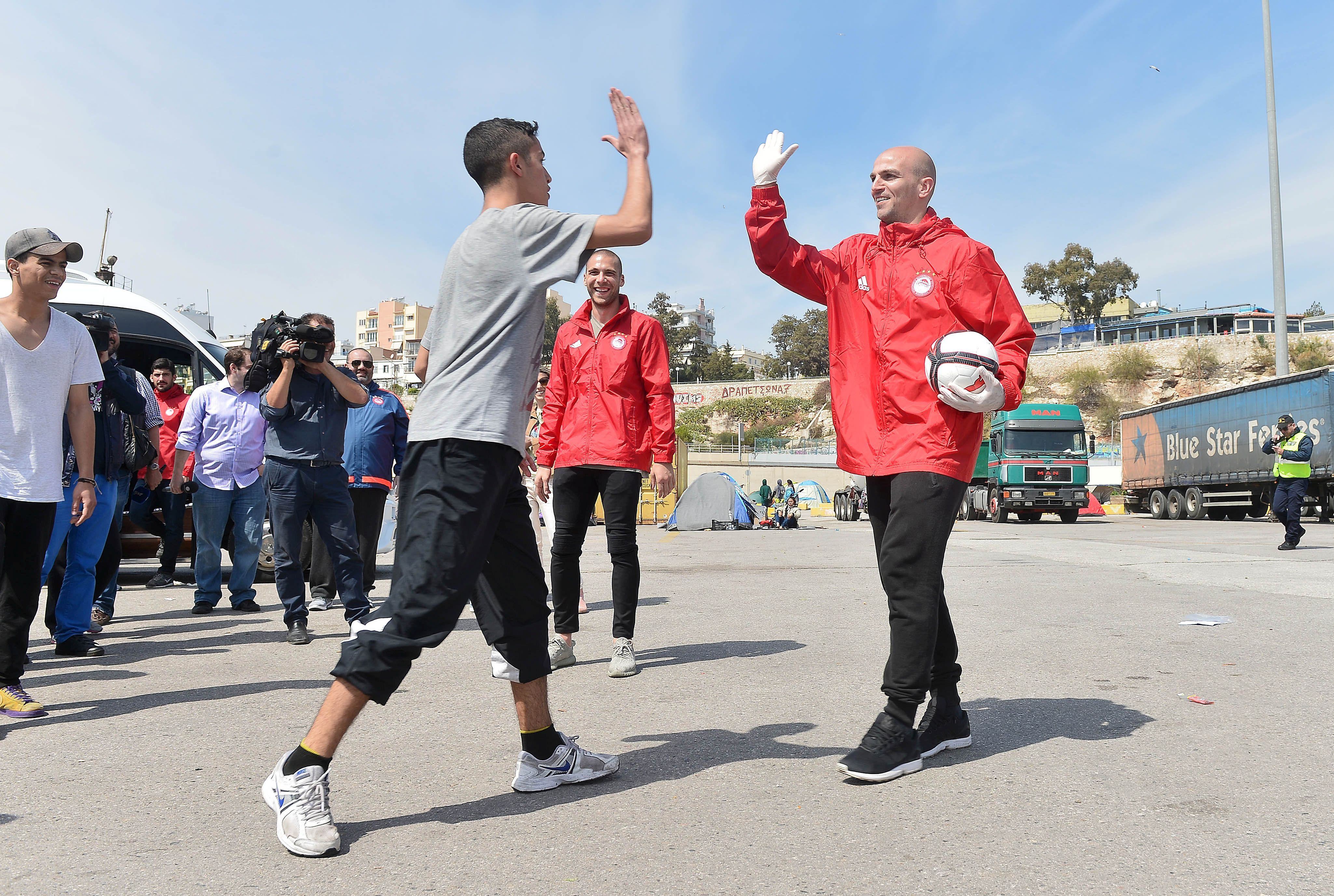 Οι παίκτες του Ολυμπιακού έπαιξαν μπάλα με πρόσφυγες