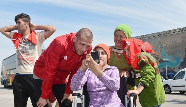 Ακολούθως, οι παίκτες άλλαξαν ορισμένες πάσες με τους πρόσφυγες και έβγαλαν και τις απαραίτητες φωτογραφίες για να απαθανατίσουν τη συγκινητική στιγμή.