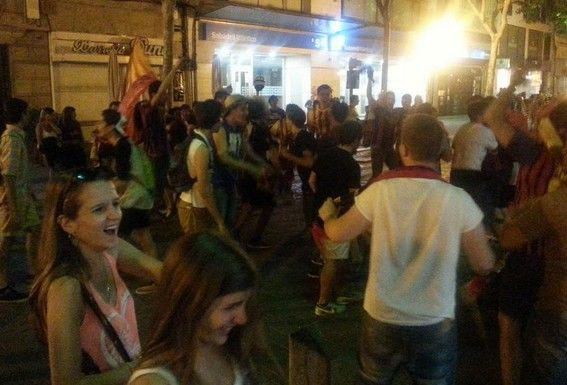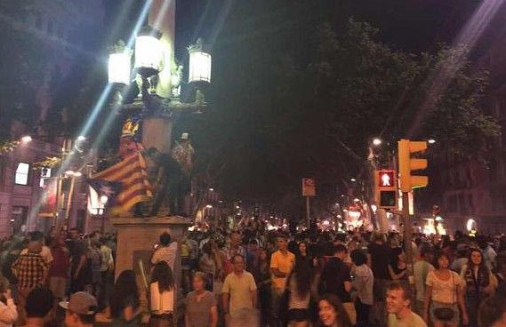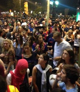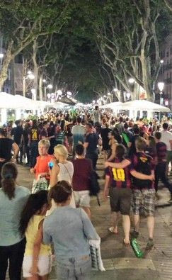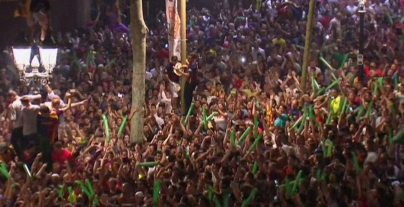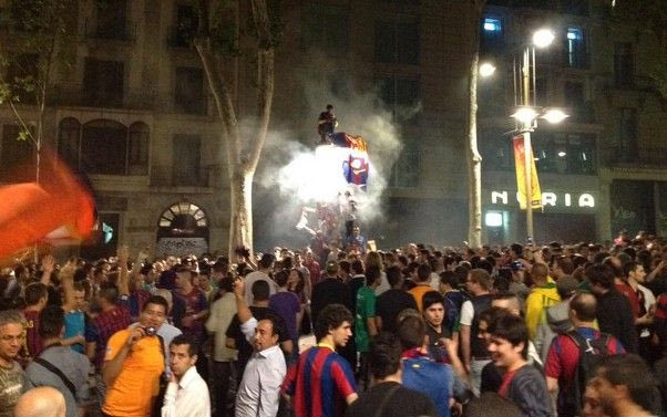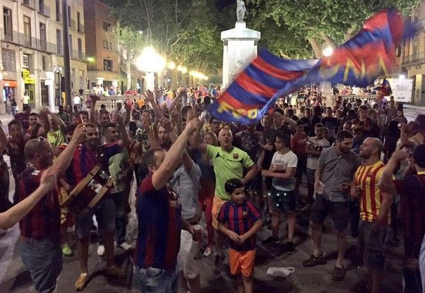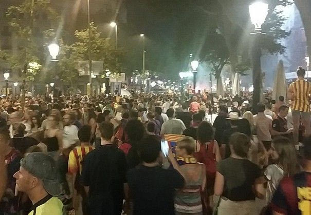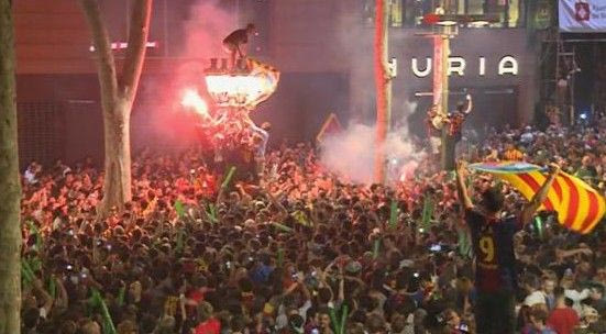 Δευτερόλεπτα μετά από το τελευταίο σφύριγμα του τελικού του Champions League με την Γιουβέντους, χιλιάδες φίλοι της Μπαρτσελόνα πλημμύρισαν την πιο κεντρική πλατεία της Βαρκελώνης, τη Ράμπλας, και με συνθήματα γιόρτασαν τη μεγάλη επιτυχία της ομάδας τους.