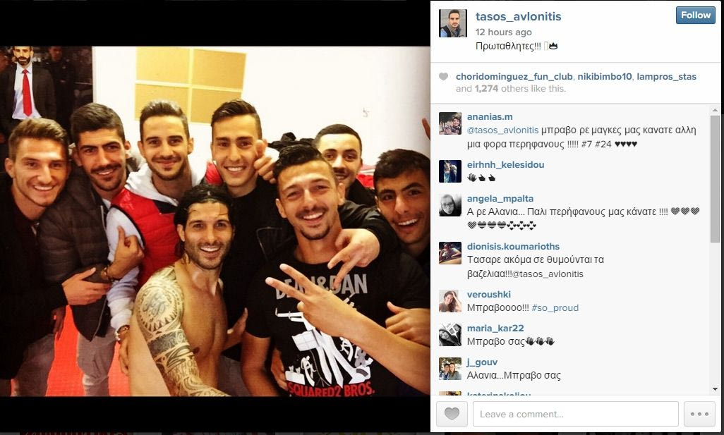 Την ίδια λεζάντα χρησιμοποίησε και ο Τάσος Αυλωνίτης στο instagram, κοινοποιώντας φωτογραφία μαζί με τους νέους Δημήτρη Διαμαντάκο, Ανδρέας Μπουχαλάκης και Κώστα Γιαννούλη, αλλά και με τον “παλιό” Αλεχάντρο Ντομίνγκες.