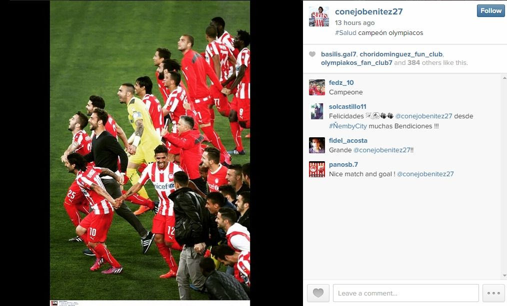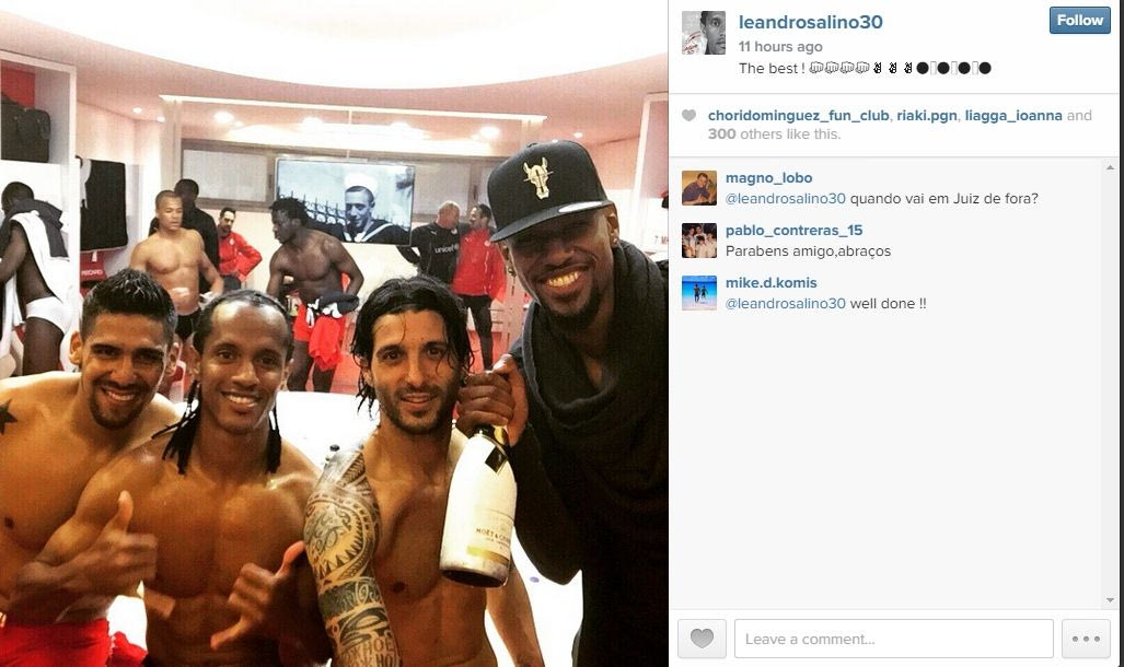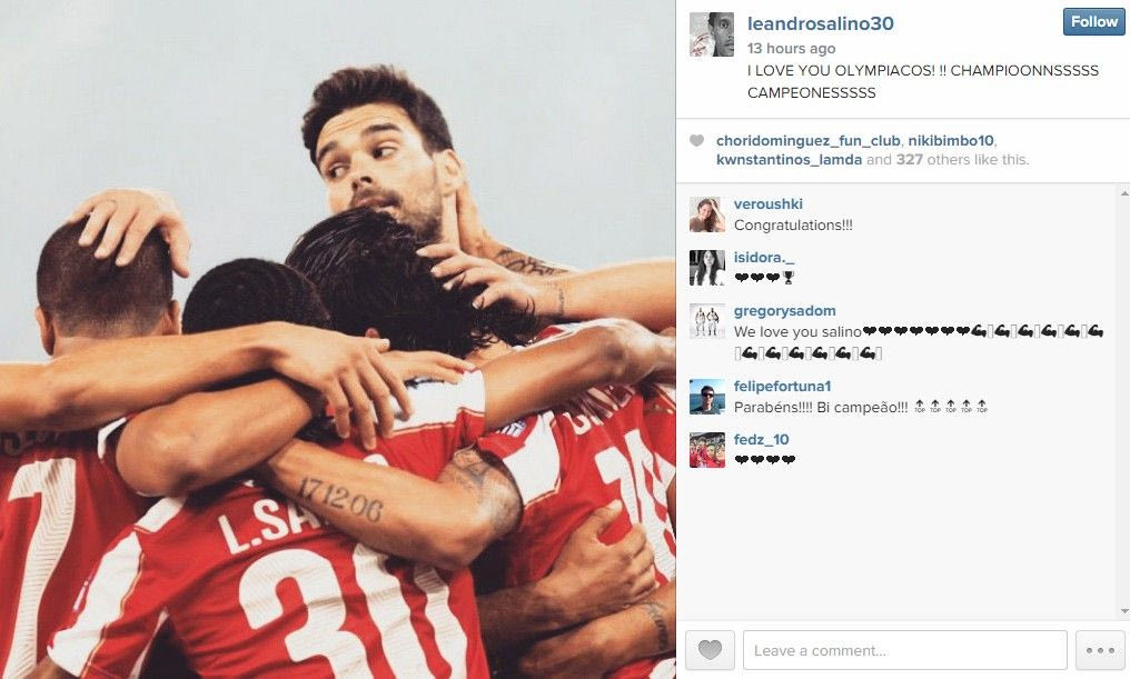 Ο Λεάντρο Σαλίνο πανηγύρισε το δεύτερο πρωτάθλημα με τα “ερυθρόλευκα”, ανεβάζοντας φωτογραφία στο instagram με τίτλο: “Οι καλύτεροι”.
