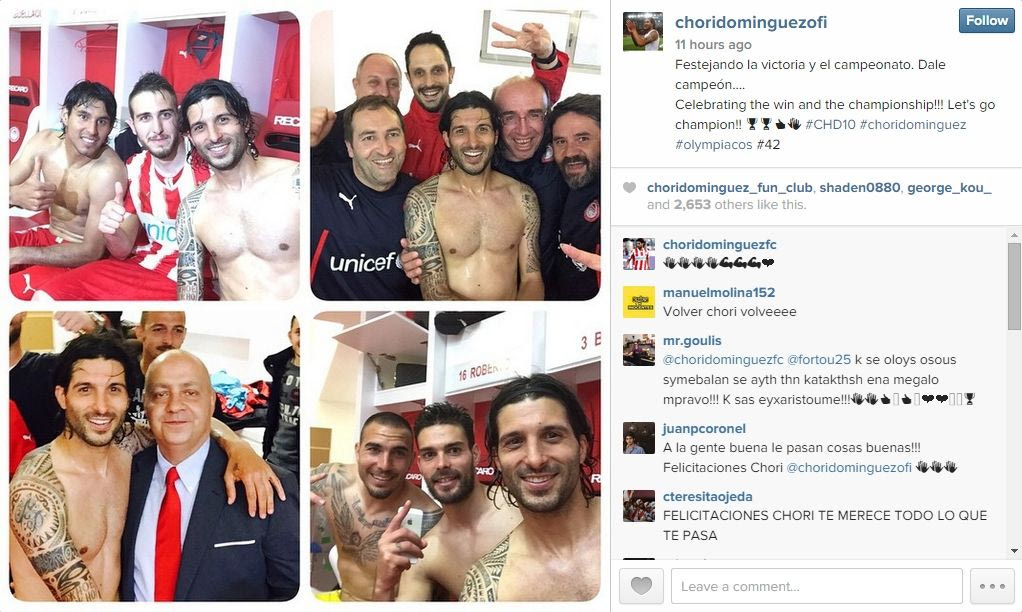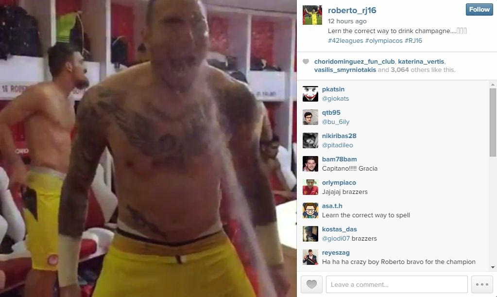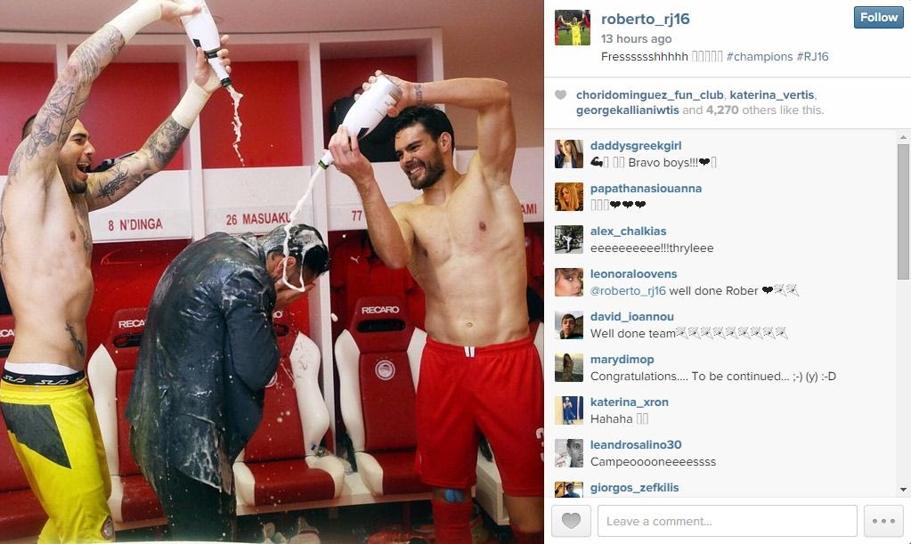 Δείτε τον τρόπο που πανηγύρισαν οι παίκτες του Ολυμπιακού την κατάκτηση του 42ου πρωταθλήματος μέσω των social media. Η σαμπάνια του Ρομπέρτο, το μήνυμα του Σαντάνα και ο "Μητσάρας" Αλεχάντρο Ντομίνγκες.