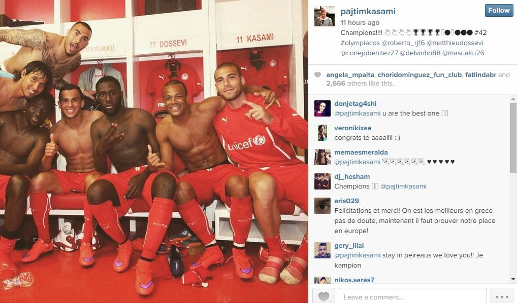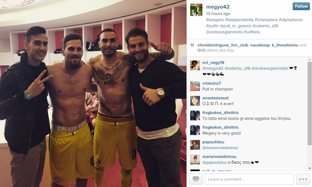 Ενώ εξέφρασε την αγάπη του για την ομάδα με ακόμα μία φωτογραφία: “Σ’ αγαπώ Ολυμπιακέ! Πρωταθλητές”!