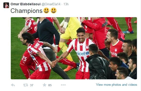 Ο Ομάρ Ελαμπντελαουί “ανέβασε” στο twitter μία φωτογραφία από τους πανηγυρισμούς, βάζοντας λεζάντα “Πρωταθλητές”.