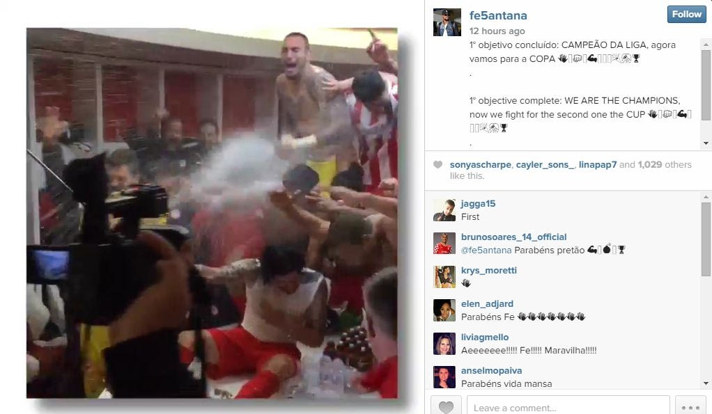 Ο Φελίπε Σαντάνα ανέβασε VIDEO στο instagram με τους πανηγυρισμούς στα αποδυτήρια, γράφοντας: “Πρώτος στόχος επετεύχθη: Είμαστε πρωταθλητές. Τώρα θα παλέψουμε για το Κύπελλο”.