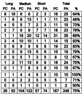 Από την άλλη ο Ολυμπιακός επιχείρησε 248 πάσες (κάτω από τις μισές) με μόλις 187 να είναι επιτυχημένες: