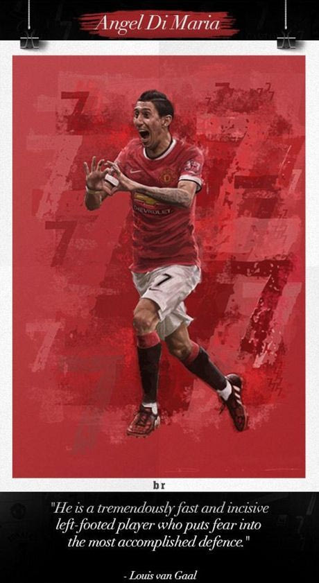 Η “bleacher report” αποφάσισε να τιμήσει τα 7άρια των “κόκκινων διαβόλων” που αγαπήθηκαν από τον κόσμο για τις επιδόσεις και τα γκολ τους, δημιουργώντας ένα ιδιαίτερο πόστερ για κάθε έναν ξεχωριστά. Από αυτά φυσικά δεν θα μπορούσε να λείπει και εκείνο του Άνχελ ντι Μαρία, που φορά τη φετινή σεζόν τη φανέλα με το 7. Δείτε το εκπληκτικό αποτέλεσμα: