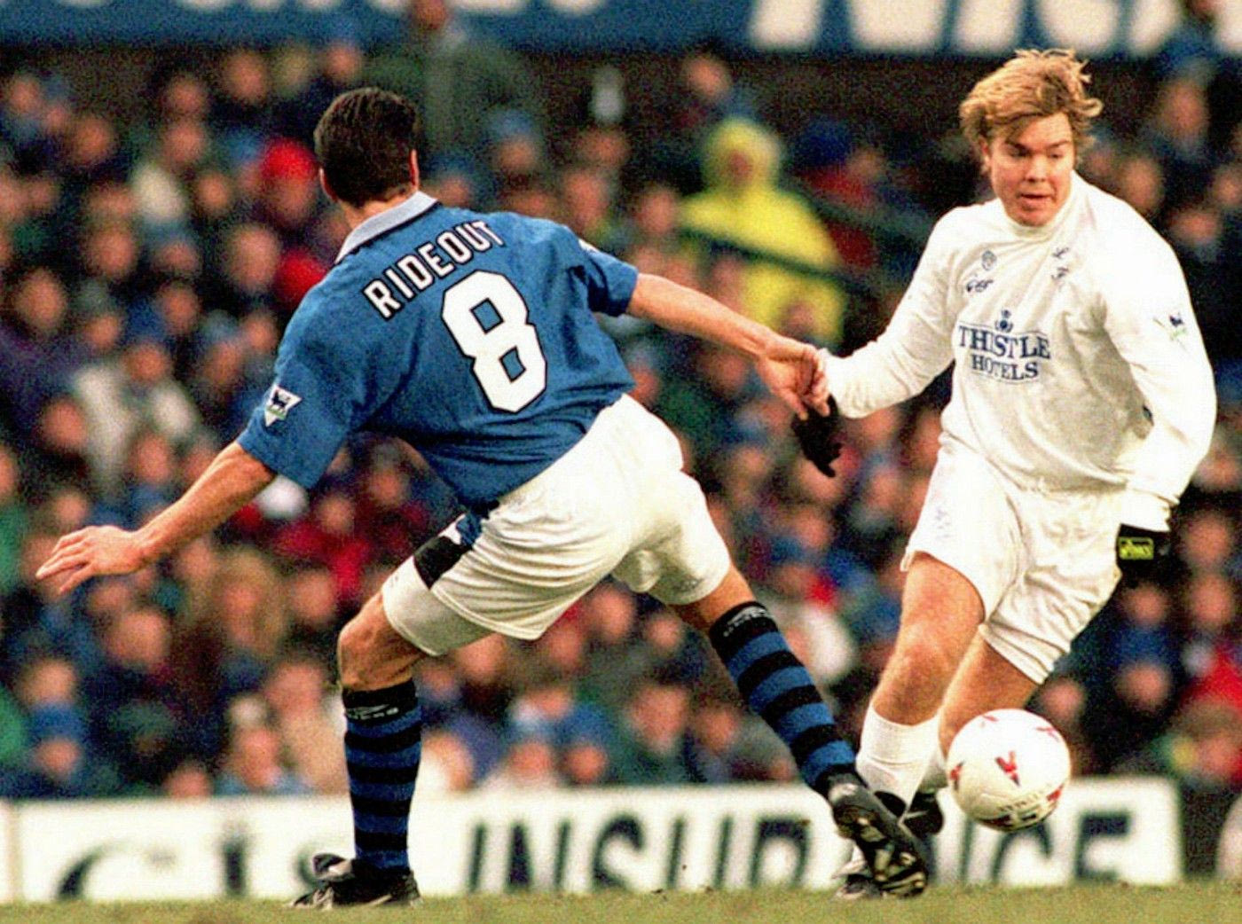 Ο Τόμας Μπρολίν της Λιντς (δεξιά) προσπαθεί να ξεπεράσει τον Πολ Ράινταουτ της Έβερτον, σε αγώνα που έγινε στο Goodison Park AP Photo/Richard Williams