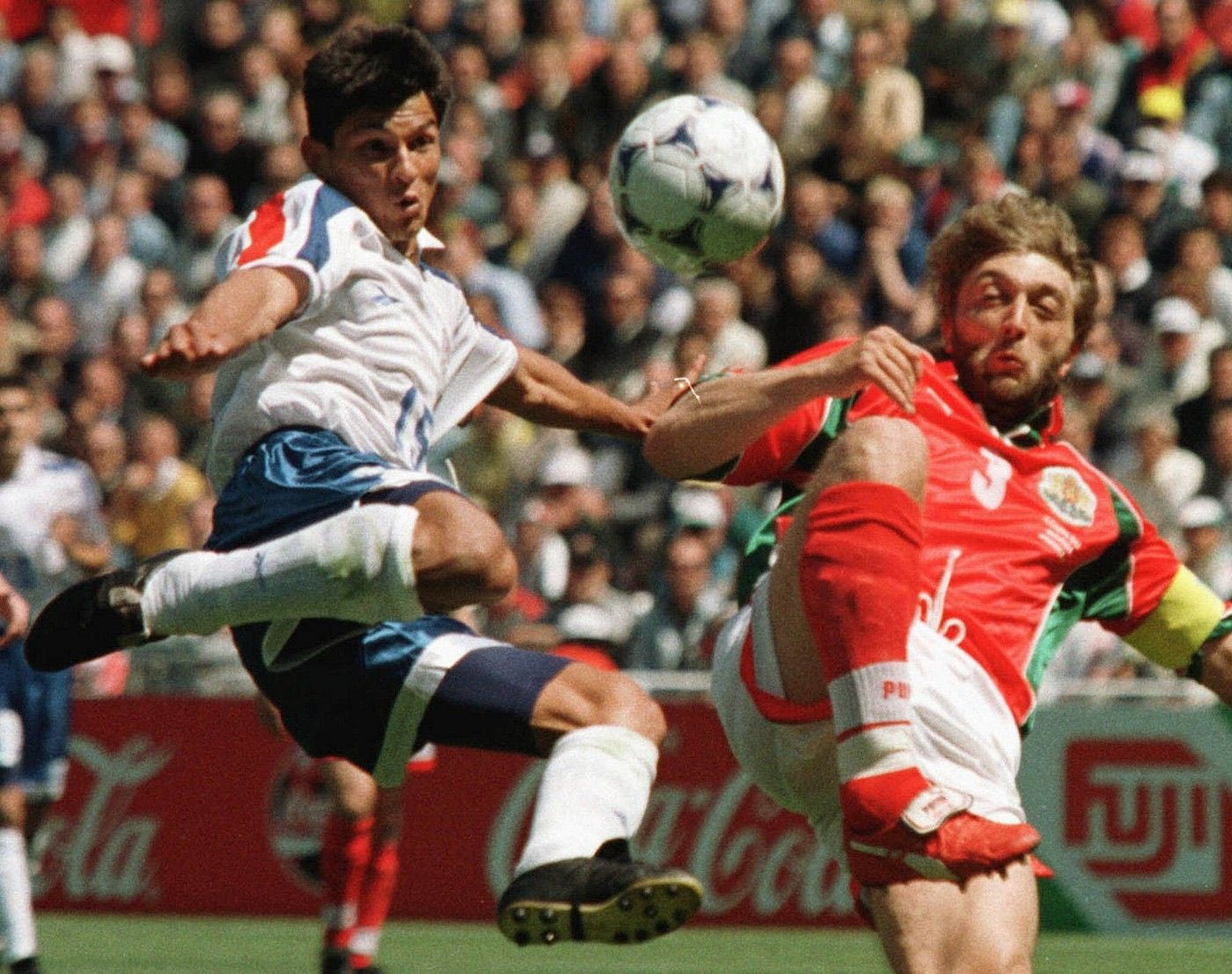 O Τρίφον Ιβάνοφ με τη φανέλα της Βουλγαρίας, διεκδικεί την μπάλα από τον Μιγκέλ Μπενίτεθ της Παραγουάης AP Photo/Lionel Cironeau