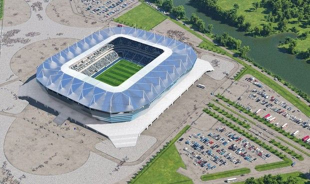 Οι εργασίες για την κατασκευή του άρχισαν τον Σεπτέμβριο του 2015 και η αιτία της καθυστέρησης έναρξης των έργων ήταν οι οικονομικές δυσκολίες που παρουσιάστηκαν, με αποκορύφωμα τη χρεοκοπία της εταιρίας που ήταν υπεύθυνη για την ανέγερσή του. Τα αρχικά πλάνα προέβλεπαν τη δημιουργία σταδίου 45.000 θέσεων με μετακινούμενη οροφή όμως τελικά υλοποιήθηκε το σχέδιο κατασκευής γηπέδου 35.000 θέσεων, εκ των οποίων οι 10.000 θα αφαιρεθούν μετά το Μουντιάλ.