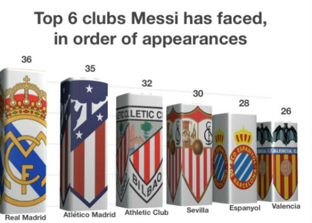 Οι top 6 ομάδες που έχει αντιμετωπίσει ανά συμμετοχές:
