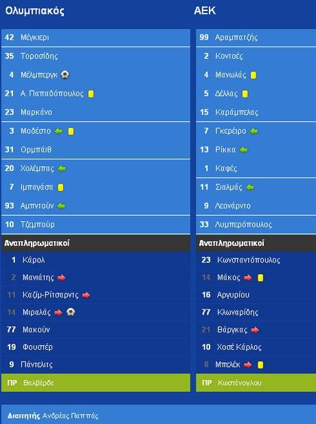 Κίτρινες κάρτες: Παπαδόπουλος, Ιμπαγάσα, Μοδέστο / Μάκος, Μπελέκ, Δέλλας, Μανωλάς