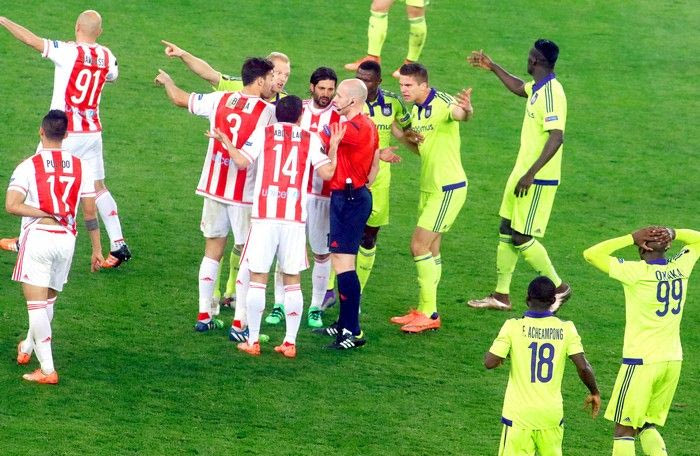 Αυτήν τη φορά τα πράγματα άλλαξαν. Ο Ολυμπιακός ήταν αυτός που αδικήθηκε από τον διαιτητή (δεν δόθηκε πέναλτι σε τράβηγμα στον Μποτία), ενώ οι Βέλγοι ήταν αυτοί που έχαναν τις ευκαιρίες.