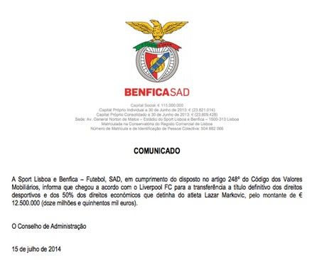 Με 12,5 εκατ. ευρώ στην Μπενφίκα η Λίβερπουλ αγόρασε το 50% των δικαιωμάτων του Λάζαρ Μάρκοβιτς. Τα άλλα 12,5 κατέληξαν στο γραφείο που τον εκπροσωπεί!