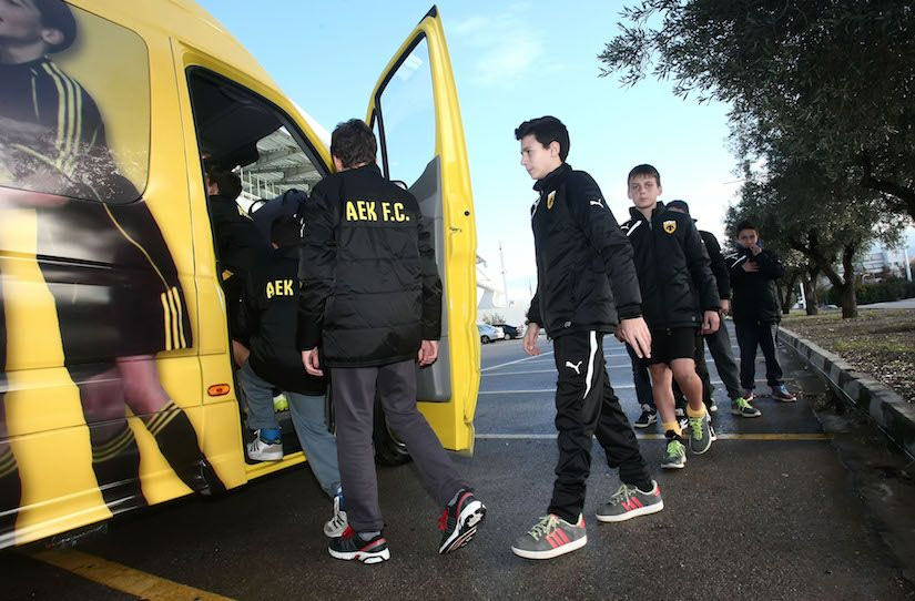 Aκολουθήσαμε για μία ολόκληρη μέρα το πρόγραμμα των ακαδημιών της ΑΕΚ. Από την επιβίβαση στο πούλμαν το μεσημέρι στο Ολυμπιακό Στάδιο μέχρι να κλείσουν τα φώτα του προπονητικού κέντρου των Σπάτων. Aφού προπονήθηκαν περίπου 7-8 τμήματα της ΑΕΚ.