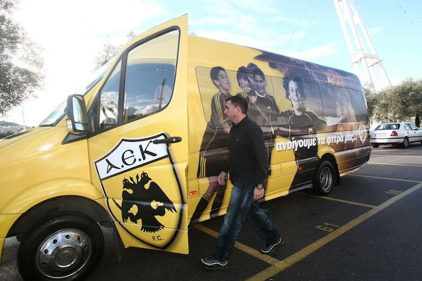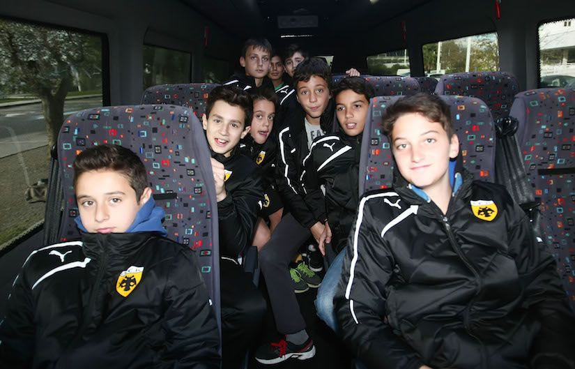 “Όπως και να το δεις, όσο πιο μικρές είναι οι ηλικίες μεγαλώνει η φασαρία. Οι πιο μικροί κάνουν περισσότερη, οι μεγαλύτεροι μικρότερη. Λογικό είναι αυτό. Εγώ δουλεύω με το πούλμαν και τα παιδιά από τότε που ξεκίνησε το εγχείρημα της ανεξάρτητης μετακίνησης των τμημάτων υποδομής με την αγορά του πούλμαν από την ΑΕΚ”, μας λέει ο Δημήτρης, ο οδηγός του πούλμαν των ακαδημιών.
