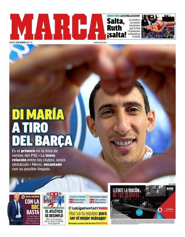 Όπως αποκαλύπτει στο σημερινό της πρωτοσέλιδο η “Marca”, ο Άνχελ Ντι Μαρία είναι ο πρώτος στη λίστα των υπό παραχώρηση παικτών της Παρί Σεν Ζερμέν καθώς υπάρχει συνωστισμός στη γραμμή κρούσης (ειδικά αν ολοκληρωθεί και το deal με τον Εμπαπέ) και η “Μπάρσα” θέλει να το εκμεταλλευτεί!