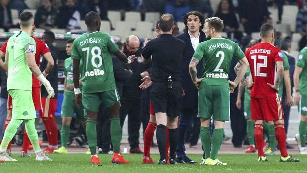 Αυτοί που αντιλήφθηκαν πρώτοι την εισβολή ήταν οι άνθρωποι στον πάγκο των ‘ερυθρολεύκων’, αφού έβλεπαν ένα τσούρμο ανθρώπων να τους κάνει επίθεση. Ο Φρανσουά Μοντεστό δεν δίστασε να μπει στον αγωνιστικό χώρο και να αρχίσει να κάνει νοήματα στον Γερμανό διαιτητή, Μάρκο Φριτς.