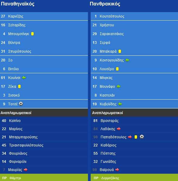 Ο "δήμιος" του Παναθηναϊκού, Δημήτρης Παπαδόπουλος, σκόραρε και πάλι απέναντι στην πρώην ομάδα του υπό τις αποδοκιμασίες των φιλάθλων και ακύρωσε το γκολ του Τοτσέ (1-1), δίνοντας το βαθμό της ισοπαλίας στην ομάδα της Κομοτηνής. Γιουχαΐσματα για την υπ' ατμόν τριπλέτα των Λουκά Βύντρα, Ζαν Αλέν Μπουμσόνγκ και Νίκου Σπυρόπουλου.