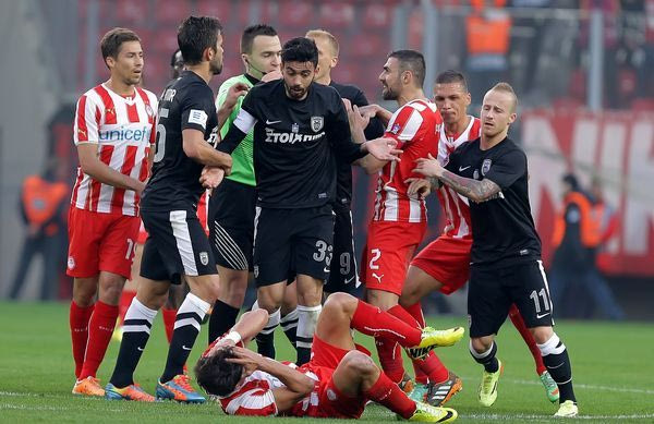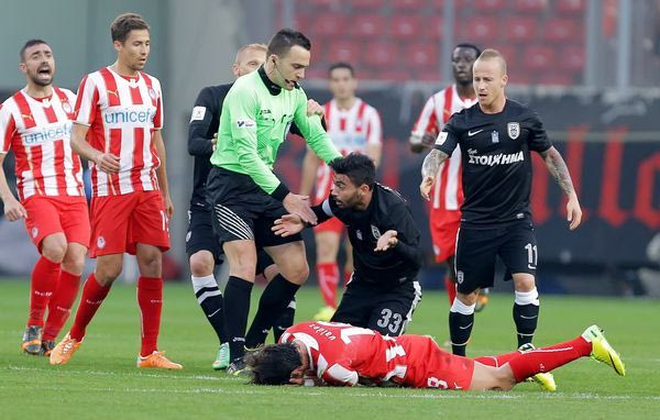 Ο ρέφερι τιμώρησε με κίτρινη κάρτα τον Φουστέρ (λανθασμένα) και με κόκκινη τον Στοχ (σωστά) προκαλώντας την οργή των ανθρώπων του ΠΑΟΚ. Ενταση επικράτησε και κατά την έξοδο του Σλοβάκου όταν ο τελευταίος κλότσησε με δύναμη μία μπάλα.