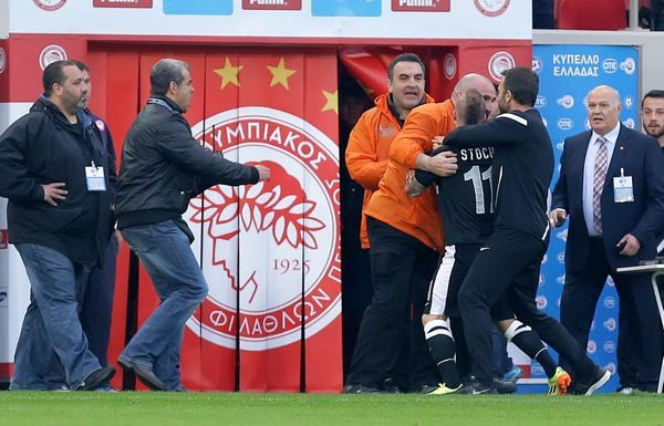 Ελάχιστα δευτερόλεπτα αργότερα το ίδιο ακριβώς πράγμα ο Στοχ πάνω στον Τσόρι. Επικράτησε πανικός και ο διαιτητής Καλογερόπουλος κλήθηκε να πάρει απόφαση.