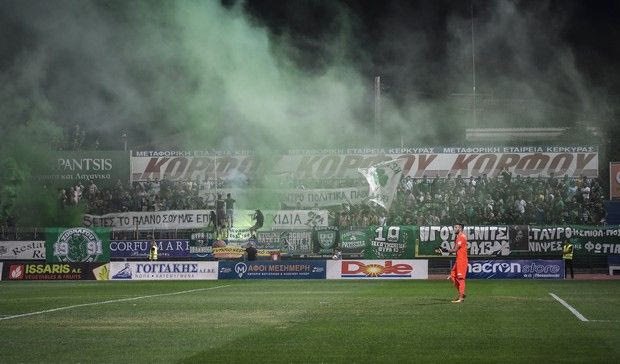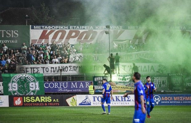 Ο Γιάννης Αλαφούζος βρέθηκε στο στόχαστρο πριν την έναρξη του αγώνα της Κέρκυρας με τον Παναθηναϊκό, με τους οπαδούς των "πρασίνων" να υψώνουν πανό εναντίον του (PHOTOS)